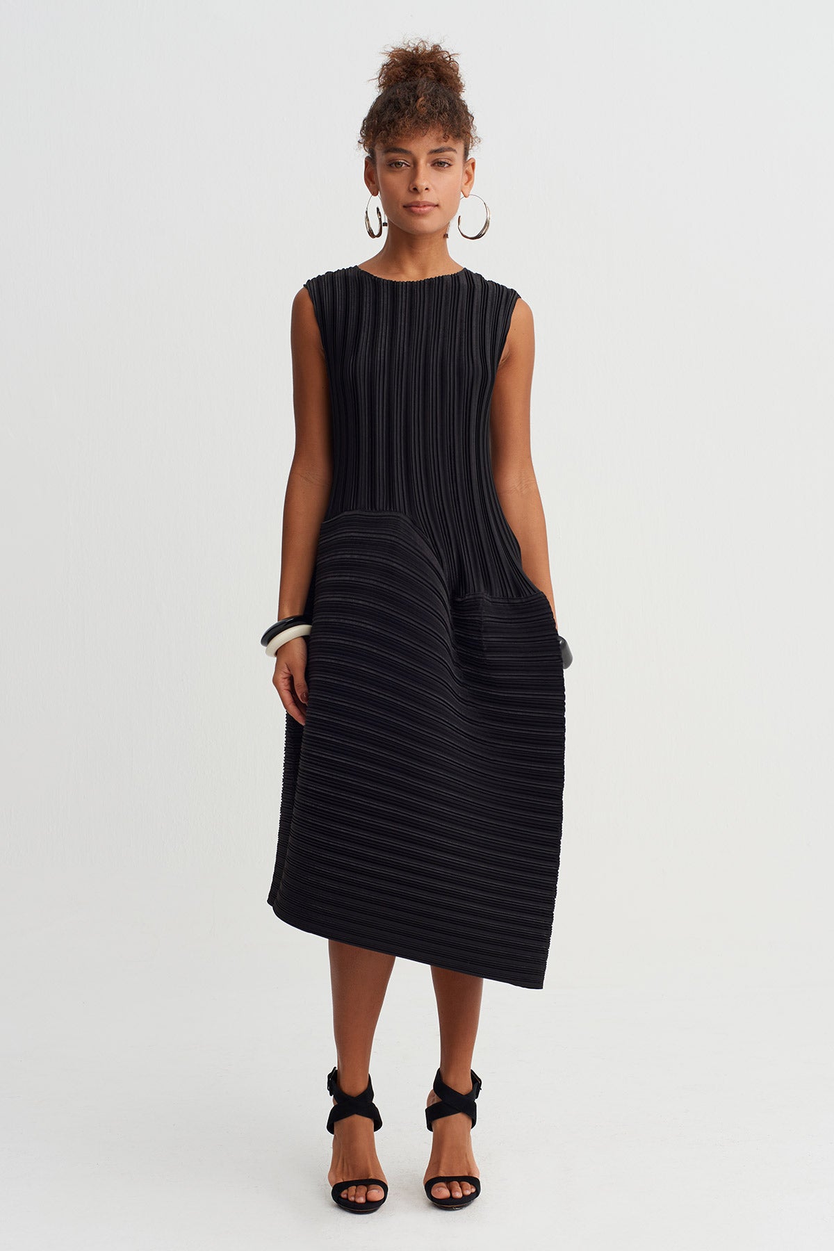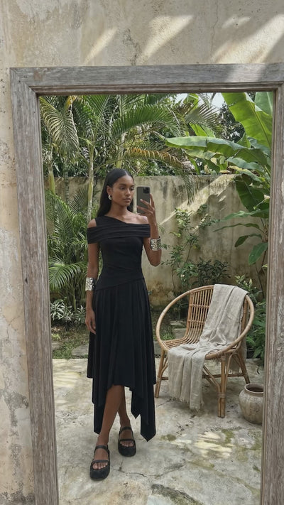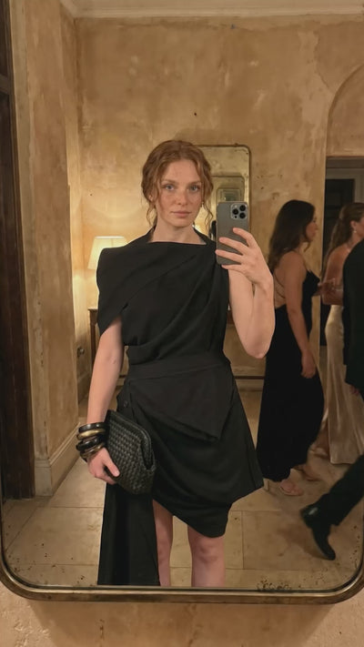 Black Asymmetric Draped Jersey Dress-Y264014013