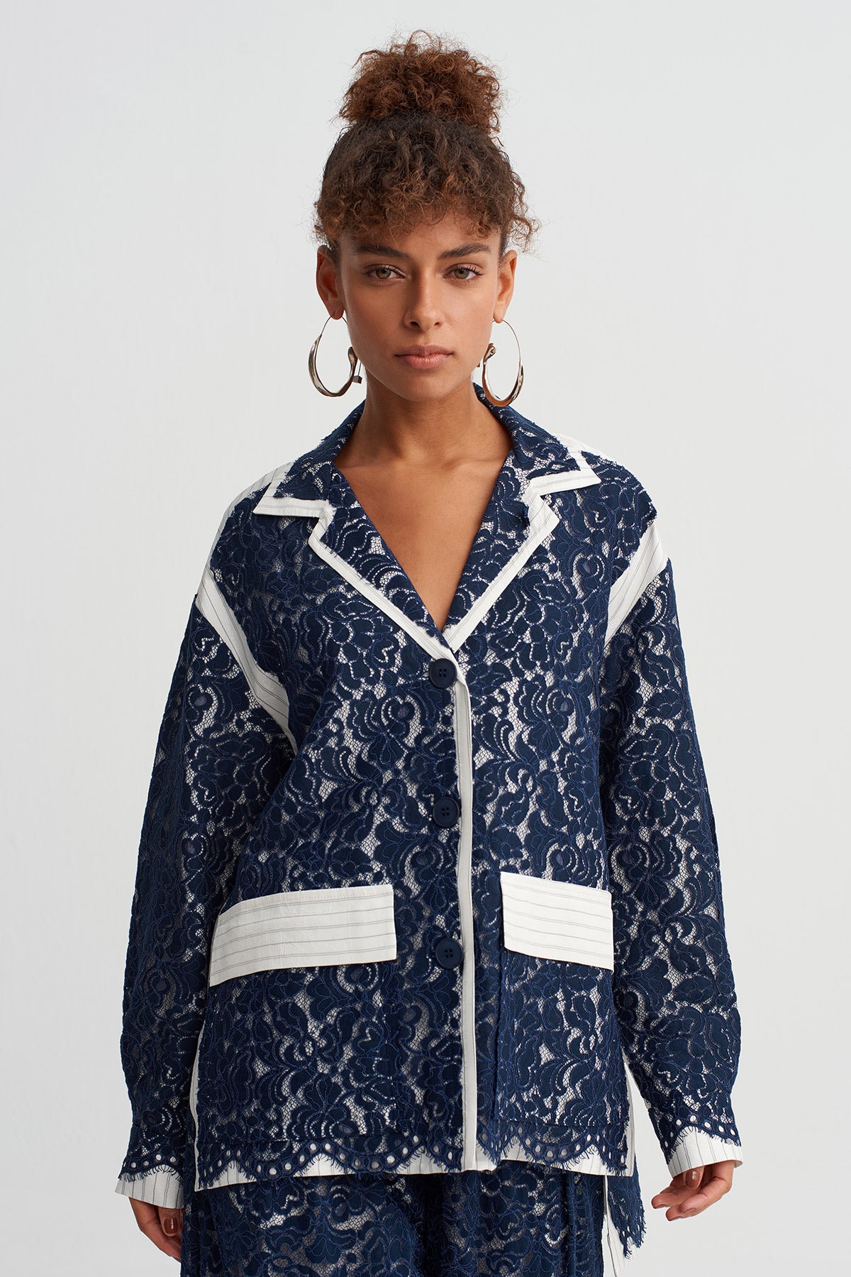 Night Blue Oversized Trench Coat-Y267017003