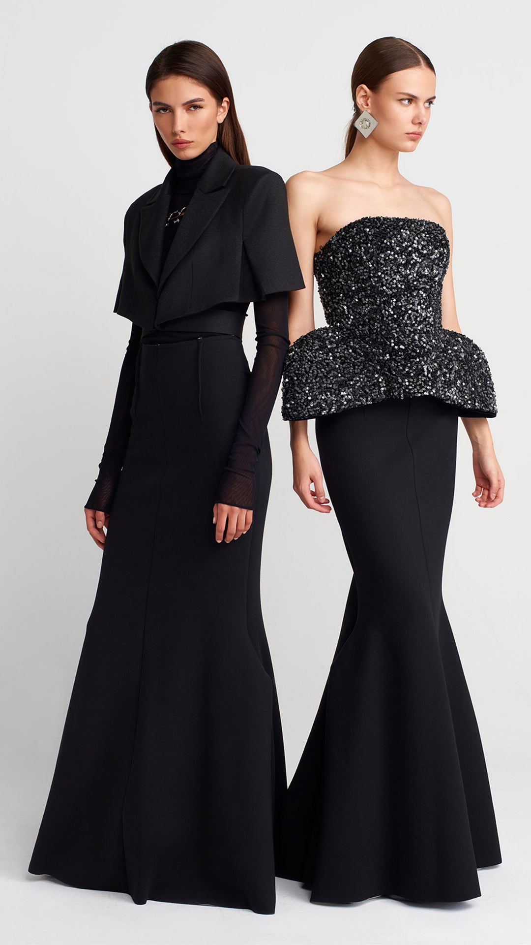 Black Velvet Polka-Dot Tulle Blouse-K251011050
