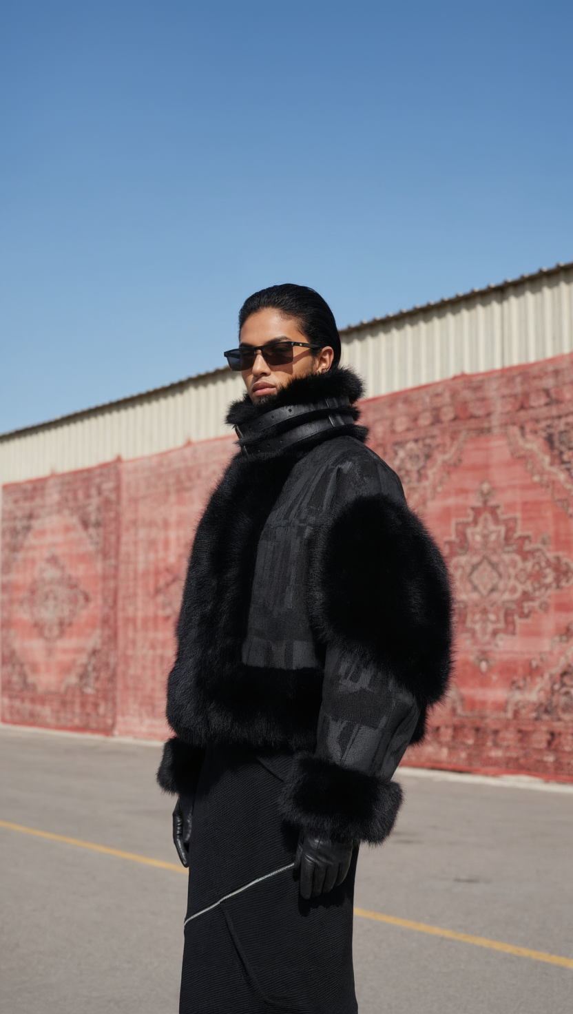 Multicolor Velvet Polka-Dot Padded Oversized Jacket-K255015037