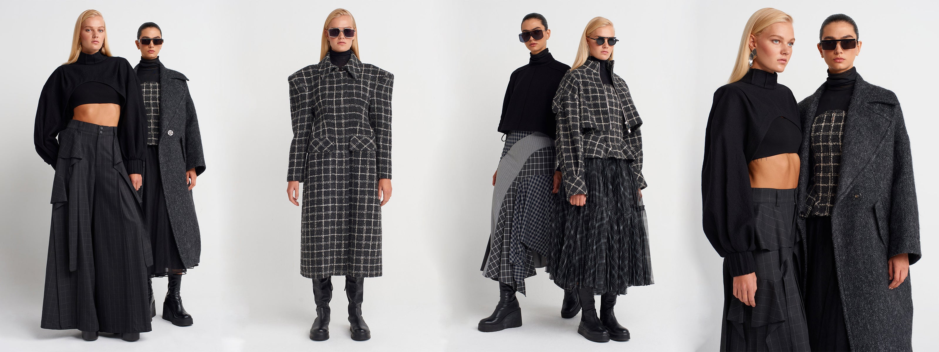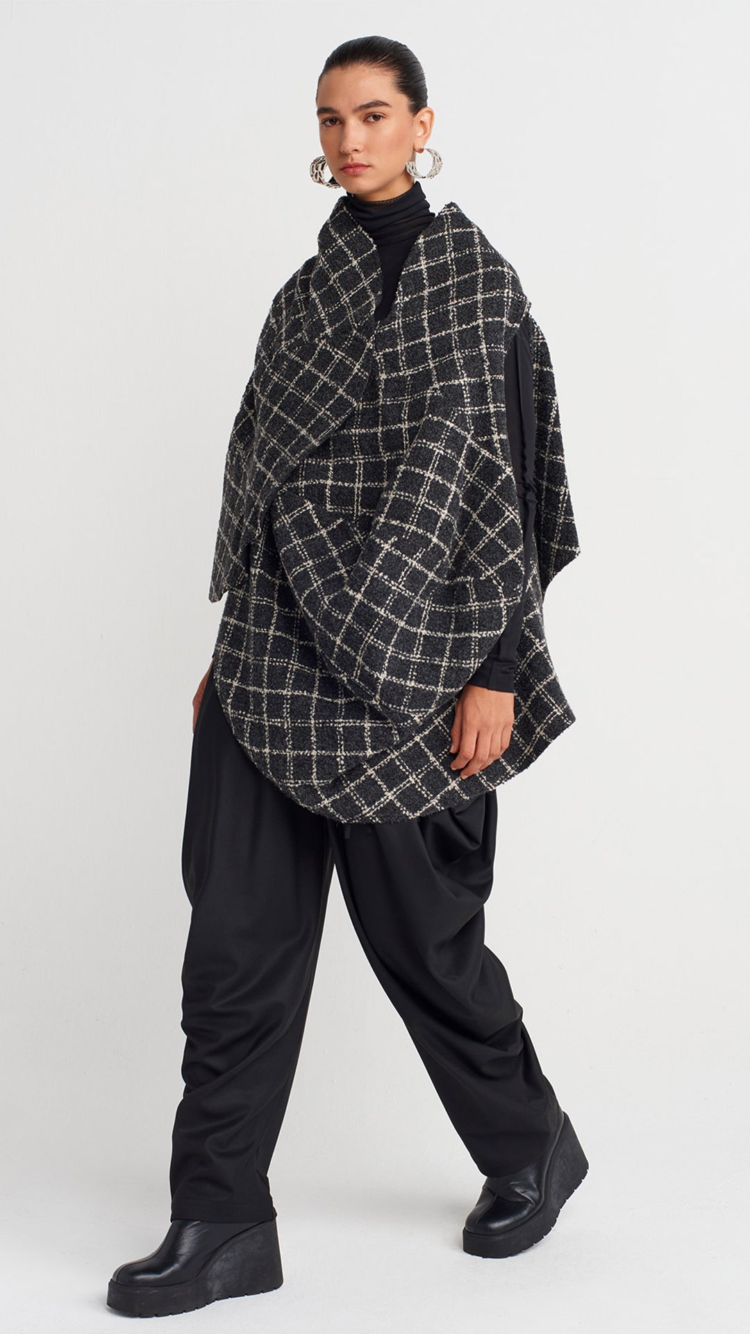 Multicolor Plaid Paneled Jacket with Back Tie-K255015052